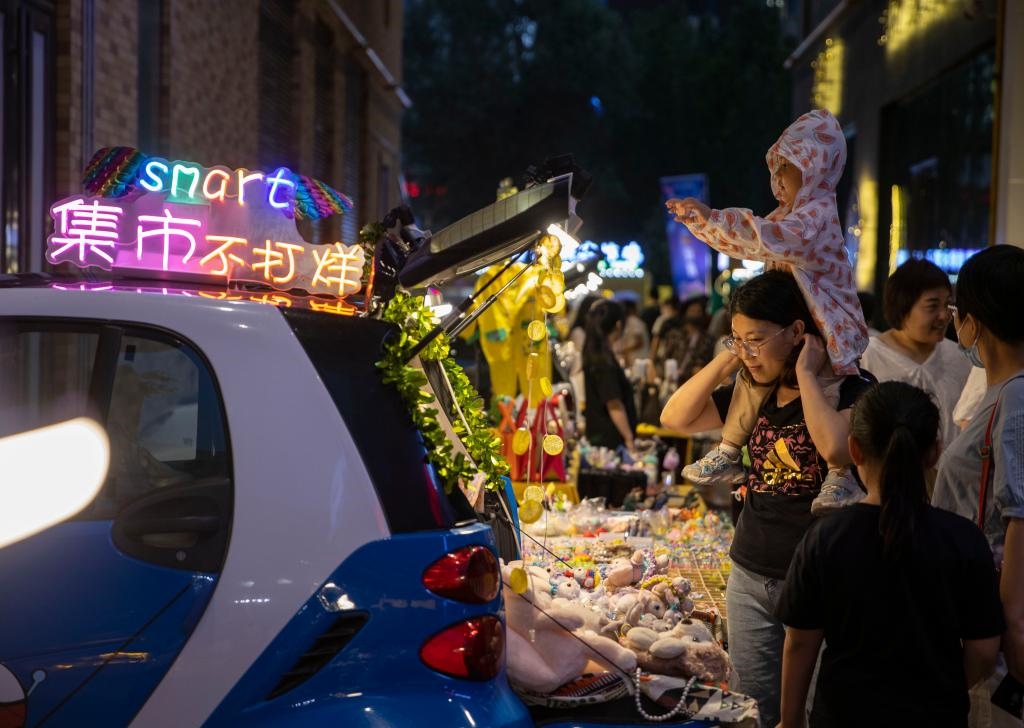 7月2日,游客在寧夏銀川市建發(fā)大閱城特色夜市購(gòu)物。當(dāng)日,第三屆“寧夏夜綻生活節(jié)”在寧夏銀川市建發(fā)大閱城中街拉開(kāi)帷幕,吸引眾多游客前來(lái)體驗(yàn)城市夜生活。新華社記者楊植森攝
