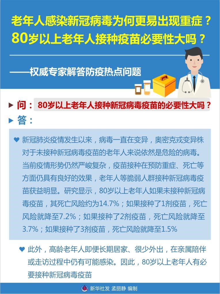 2.問:80歲以上老年人接種新冠病毒疫苗的必要性大嗎?