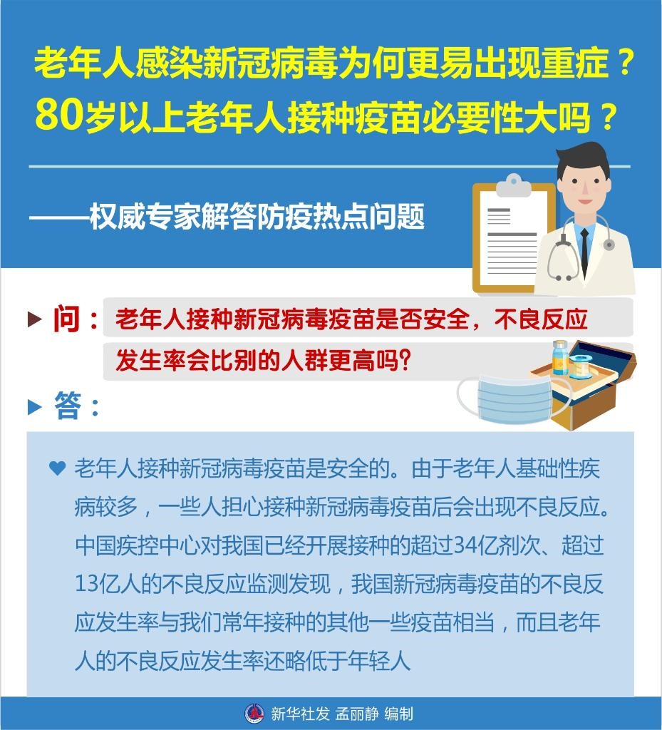 3.問:老年人接種新冠病毒疫苗是否安全,不良反應(yīng)發(fā)生率會(huì)比別的人群更高嗎?