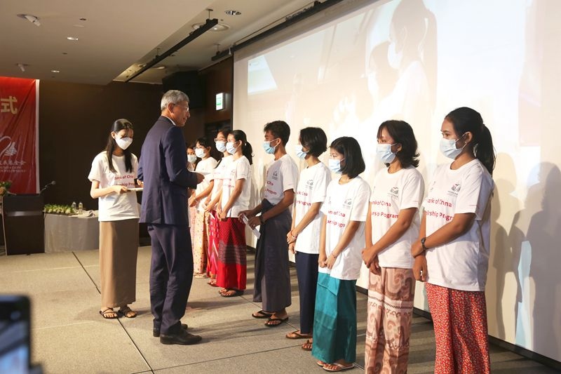 中國(guó)銀行獎(jiǎng)助學(xué)金項(xiàng)目由中國(guó)銀行出資,中國(guó)鄉(xiāng)村發(fā)展基金會(huì)執(zhí)行。中國(guó)駐緬大使陳海、緬甸央行行長(zhǎng)丹丹瑞等出席儀式,中銀香港副總裁陳文、中國(guó)鄉(xiāng)村發(fā)展基金會(huì)秘書長(zhǎng)陳紅濤等線上參會(huì)。
