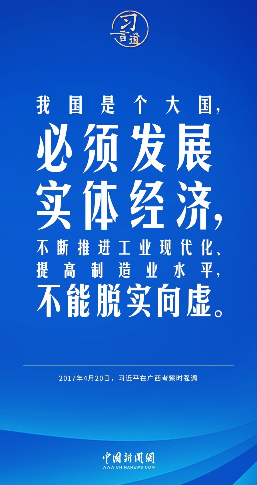 習(xí)近平總書(shū)記一直高度重視實(shí)體經(jīng)濟(jì)發(fā)展,多次作出重要論述,強(qiáng)調(diào)把發(fā)展經(jīng)濟(jì)的著力點(diǎn)放在實(shí)體經(jīng)濟(jì)上。