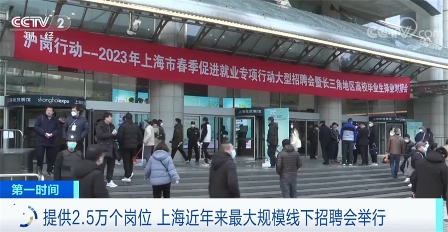 2月25日,“2023年上海市春季促進(jìn)就業(yè)專項(xiàng)行動(dòng)大型招聘會(huì)暨長三角地區(qū)高校畢業(yè)生擇業(yè)對接會(huì)”舉行。這次招聘會(huì)是2020年以來上海舉辦的最大規(guī)模的線下招聘會(huì),1200余家招聘單位提供招聘崗位超過2.5萬個(gè)。