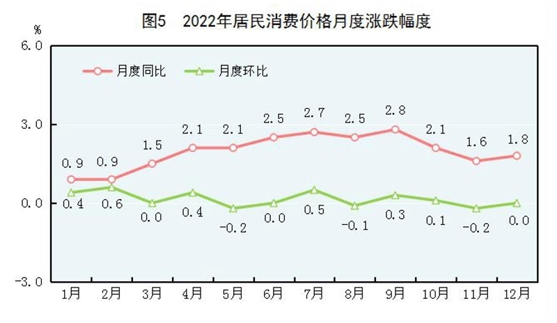 全年居民消費(fèi)價格比上年上漲2.0%。工業(yè)生產(chǎn)者出廠價格上漲4.1%。工業(yè)生產(chǎn)者購進(jìn)價格上漲6.1%。農(nóng)產(chǎn)品生產(chǎn)者價格[9]上漲0.4%。12月份,70個大中城市中,新建商品住宅銷售價格同比上漲的城市個數(shù)為16個,持平的為1個,下降的為53個;二手住宅銷售價格同比上漲的城市個數(shù)為6個,下降的為64個。