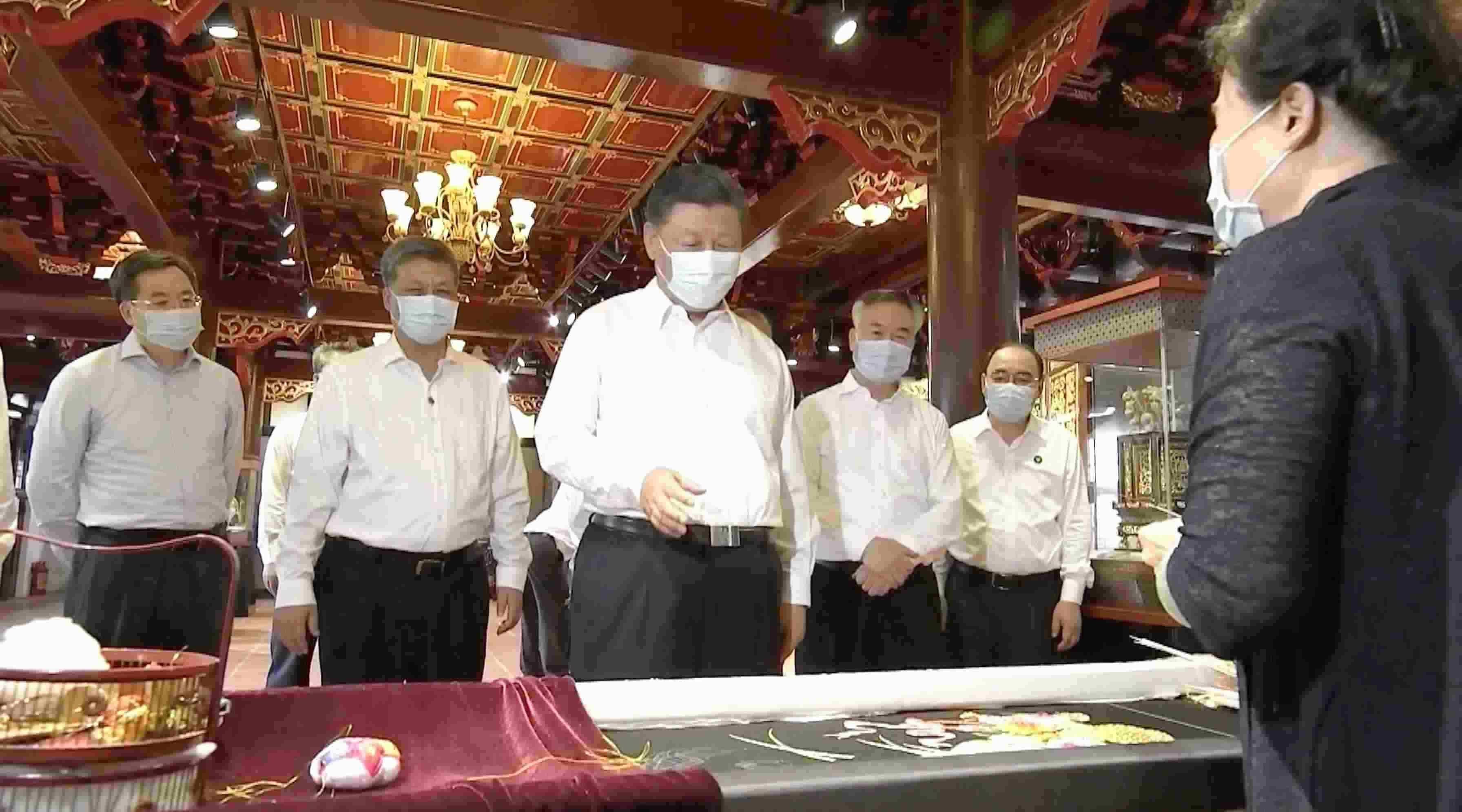 2020年10月,繡娘康惠芳在廣濟樓展廳內見到前來考察的習近平總書記。
