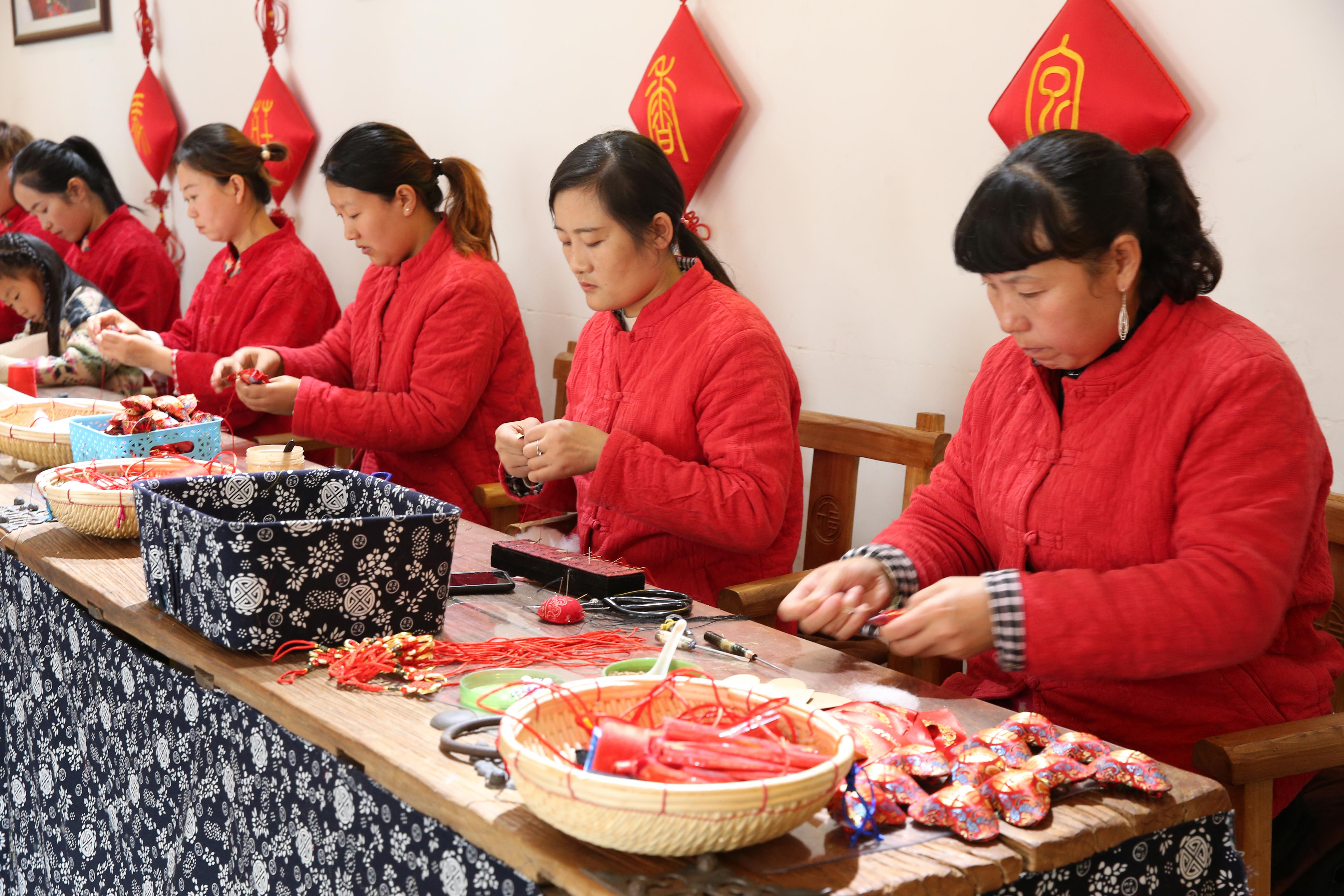△在化屋村扶貧車間,隨處可見村民忙碌的身影。車間里有服裝刺繡、工藝品、蠟染等產品,銷量良好。