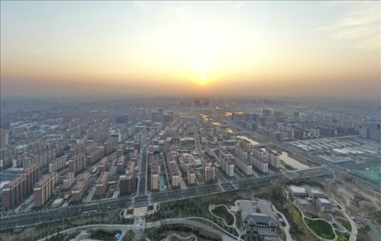 3月31日在雄安新區(qū)拍攝的日出(無人機照片)。