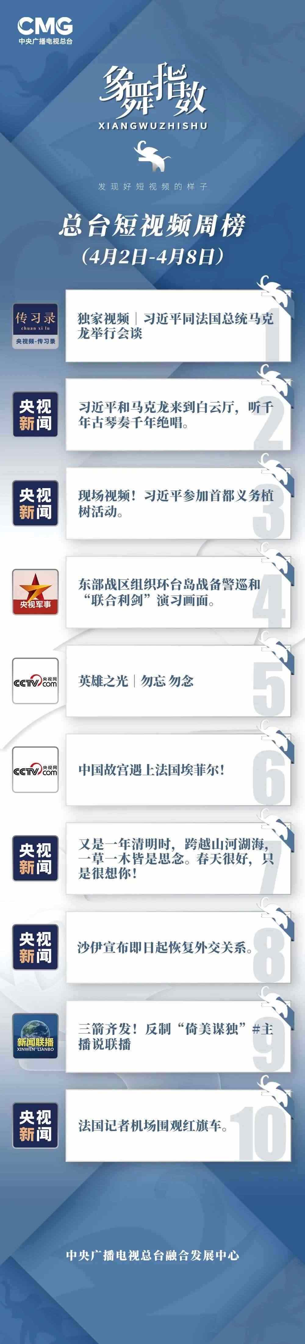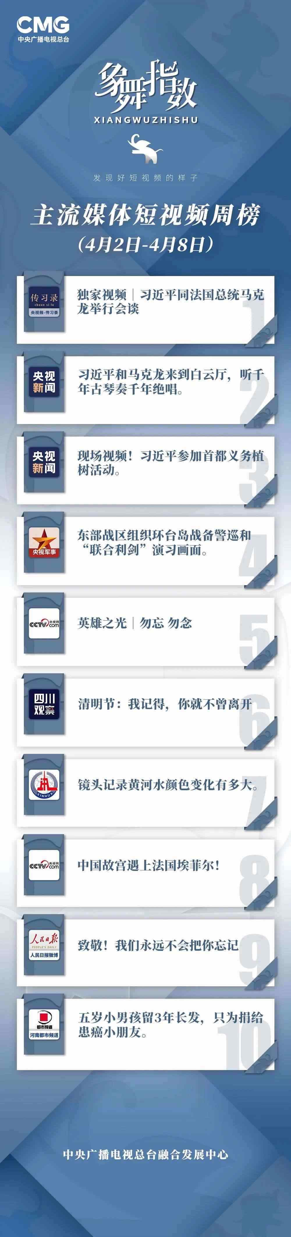 中央廣播電視總臺“象舞指數(shù)”評議品牌,推出主流媒體短視頻周榜、總臺短視頻周榜。在2023年4月2日—4月8日,這些內(nèi)容引發(fā)大眾關注: