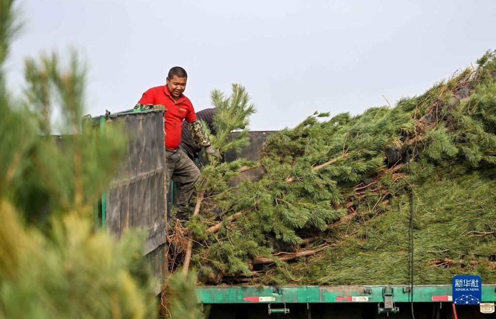 4月15日,在內(nèi)蒙古通遼市科爾沁左翼后旗,治沙工人在運(yùn)送樹(shù)苗。