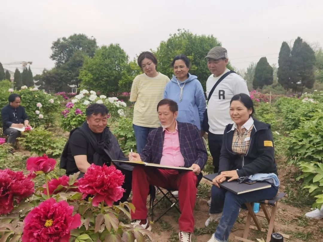 自1975年29歲的何水法先生以赤子之心,首次只身赴菏澤,48年來,為畫牡丹,寫其牡丹之真情、寫其牡丹之風(fēng)骨,寫其國花繁榮富強(qiáng)之真諦。用何水法先生世紀(jì)之初所言:“寫生是畫家與生活的對話”。藝術(shù)家也要不斷地站在時代的前列,站在歷史的高位,不斷思索,不斷地刷新繪畫語言。要緊隨時代發(fā)展的需要,不斷突破新題材、突破新意境。因此他今年又親率眾學(xué)生第十五次來菏澤深入考察,發(fā)揮示范引領(lǐng)作用,體驗生活、開闊思維,為謳歌人民、謳歌新時代,進(jìn)行新的藝術(shù)創(chuàng)造。