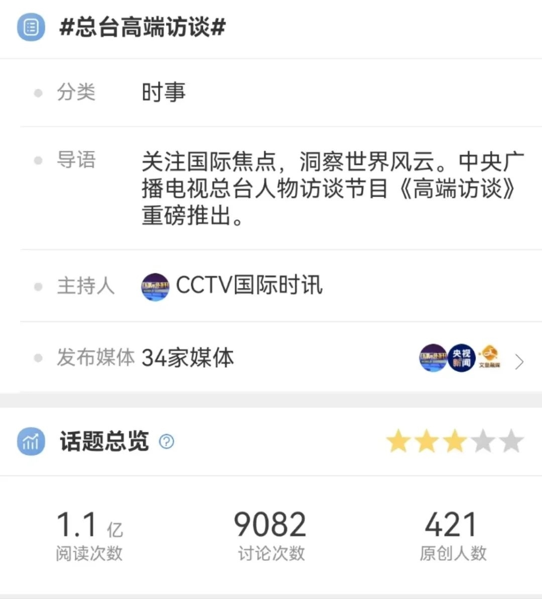在充分調(diào)研的基礎(chǔ)上,《高端訪談》的采訪敢于碰真問題、硬問題,緊扣當(dāng)下熱點(diǎn),以觀點(diǎn)鮮明、針對性強(qiáng)、易于傳播的重磅采訪報(bào)道主動(dòng)設(shè)置議題,奮力提升中國聲音在國際輿論場中的話語權(quán)。