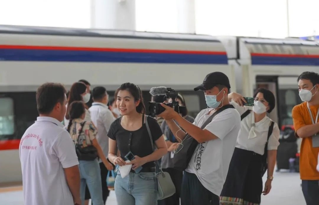 △總臺(tái)主持人鄒韻在中老鐵路“瀾滄號(hào)”動(dòng)車上采訪