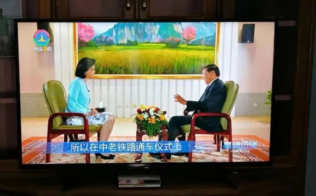 △專訪老撾國家主席通倫的節(jié)目在老撾國家電視臺(tái)播出