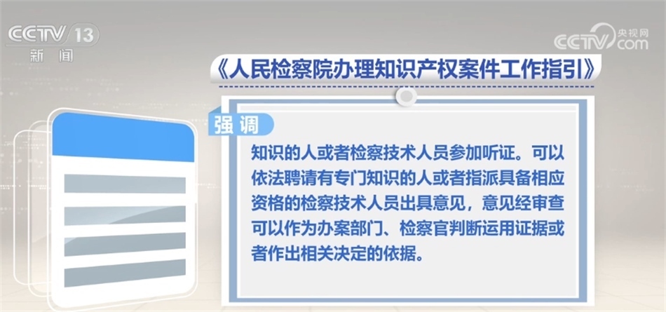 同時,《工作指引》強調,遇有涉及國家秘密、商業(yè)秘密、個人隱私或者其他需要保密的情形,應當依利害關系人書面申請,采取組織訴訟參與人簽署保密承諾書、對秘密信息進行技術處理等必要的保密措施。針對知識產(chǎn)權案件技術性強的特點,根據(jù)案件需要,可以邀請有專門知識的人或者檢察技術人員參加聽證,可以依法聘請有專門知識的人或者指派具備相應資格的檢察技術人員出具意見。意見經(jīng)審查可以作為辦案部門、檢察官判斷運用證據(jù)或者作出相關決定的依據(jù)。