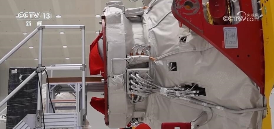 這個就是貨運飛船的貨物艙,航天員所需的食物、水、實驗設(shè)備等物資都是裝在這里快遞到空間站的。這個就是貨運飛船的對接口,航天員就是通過這個對接口進入貨運飛船的。