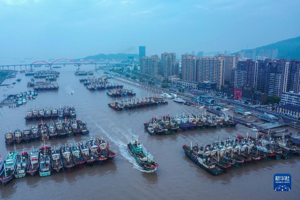4月30日,在浙江省舟山市普陀區(qū)沈家門漁港,漁船歸港準(zhǔn)備休漁(無(wú)人機(jī)照片)。   新華社發(fā)(鄒訓(xùn)永攝)