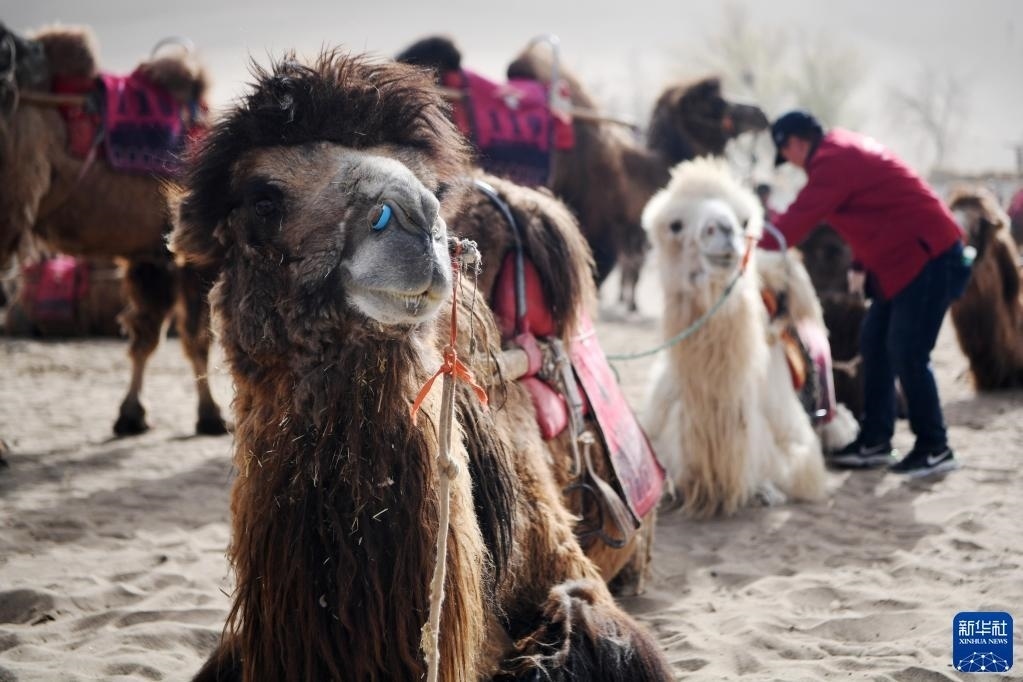 騎著駱駝穿行大漠,遙想絲綢之路繁華盛景,是游客在甘肅敦煌的重要體驗(yàn)項(xiàng)目。在距敦煌鳴沙山月牙泉景區(qū)最近的月牙泉村,村民們馴養(yǎng)著2000多峰駱駝,編有700多個(gè)駝號(hào),這些特殊的“員工”每天輪流在鳴沙山月牙泉景區(qū)“上班”。