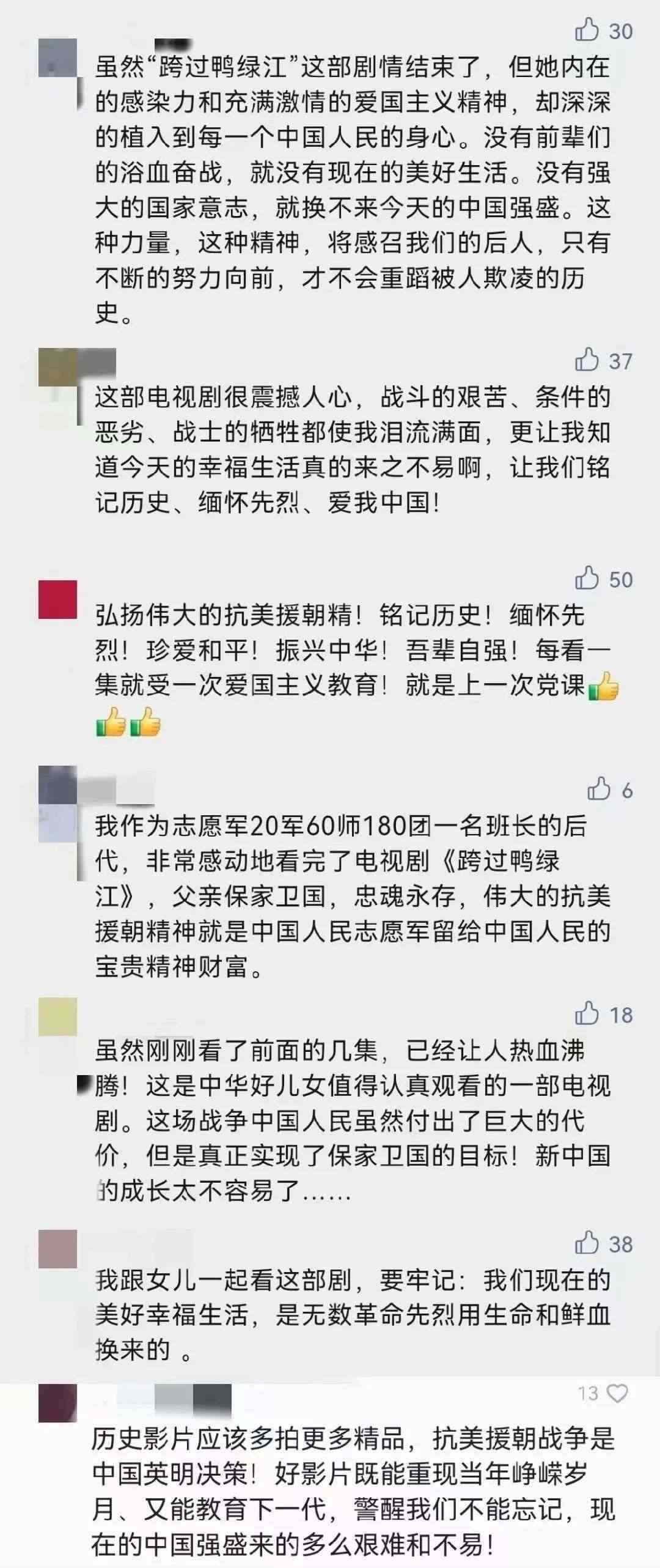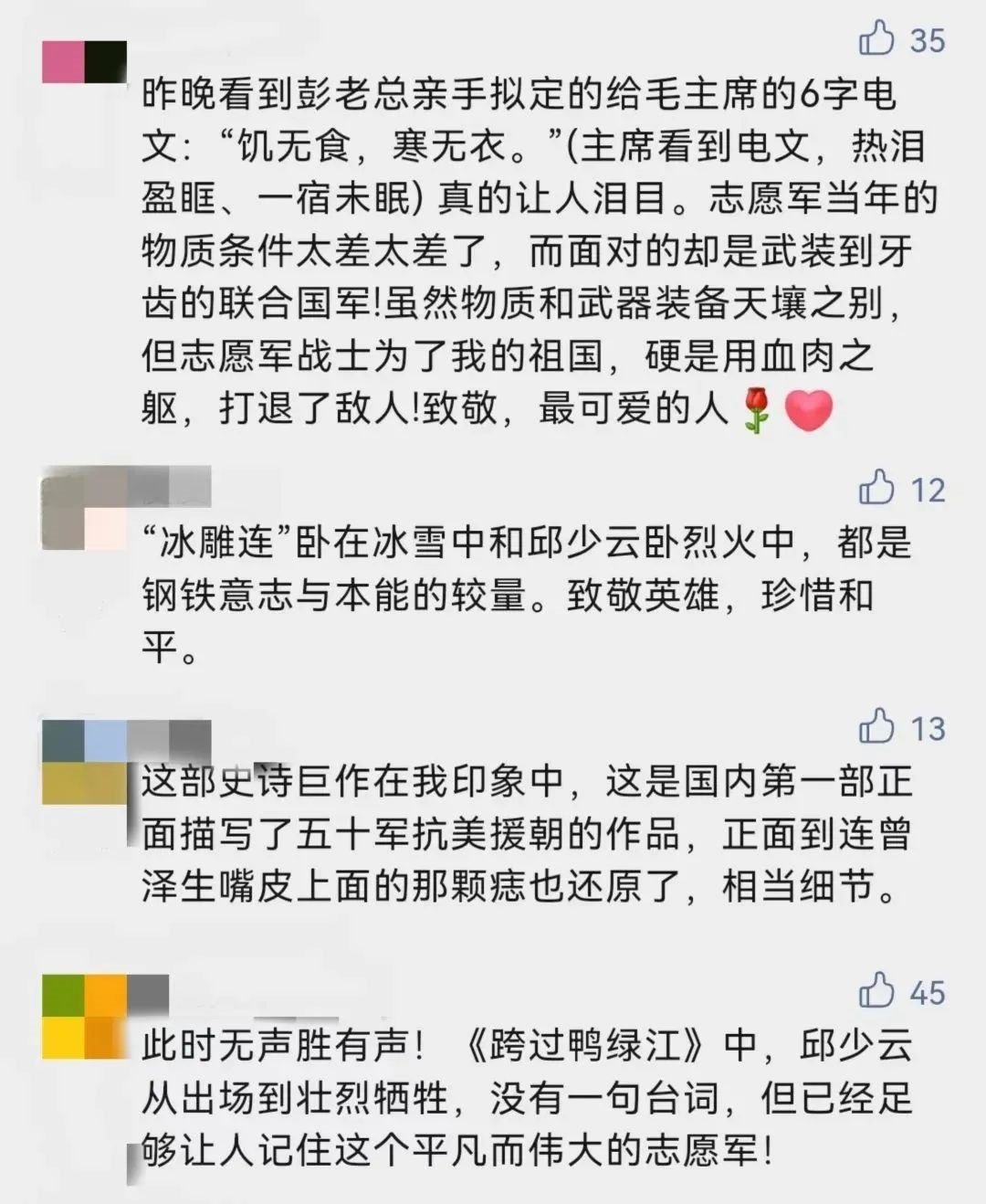 “抗美援朝絕對是值得紀念和謳歌的奇跡!這部電視劇是一部愛國主義教育的活教材!”這是網友對這部劇的評價。