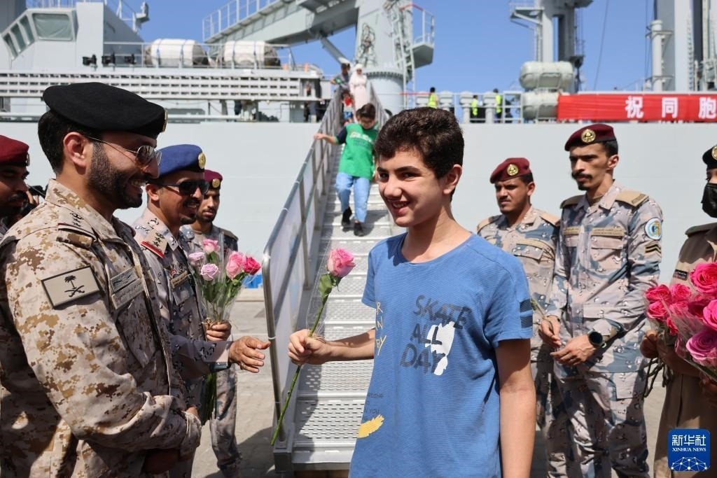 4月27日,從蘇丹撤離人員乘坐中國海軍軍艦抵達(dá)沙特阿拉伯吉達(dá)港。新華社記者 王海洲 攝