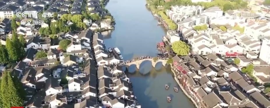 在上海,不少游客來到青浦區(qū)的古鎮(zhèn)朱家角,感受江南的水鄉(xiāng)風(fēng)情。除了看園林、看建筑,還有一系列沉浸式游覽。游客可以坐上小船,也可以走進(jìn)茶樓,感受水鄉(xiāng)風(fēng)情,聽聽評(píng)彈,吃江南糕點(diǎn),品上海味道。