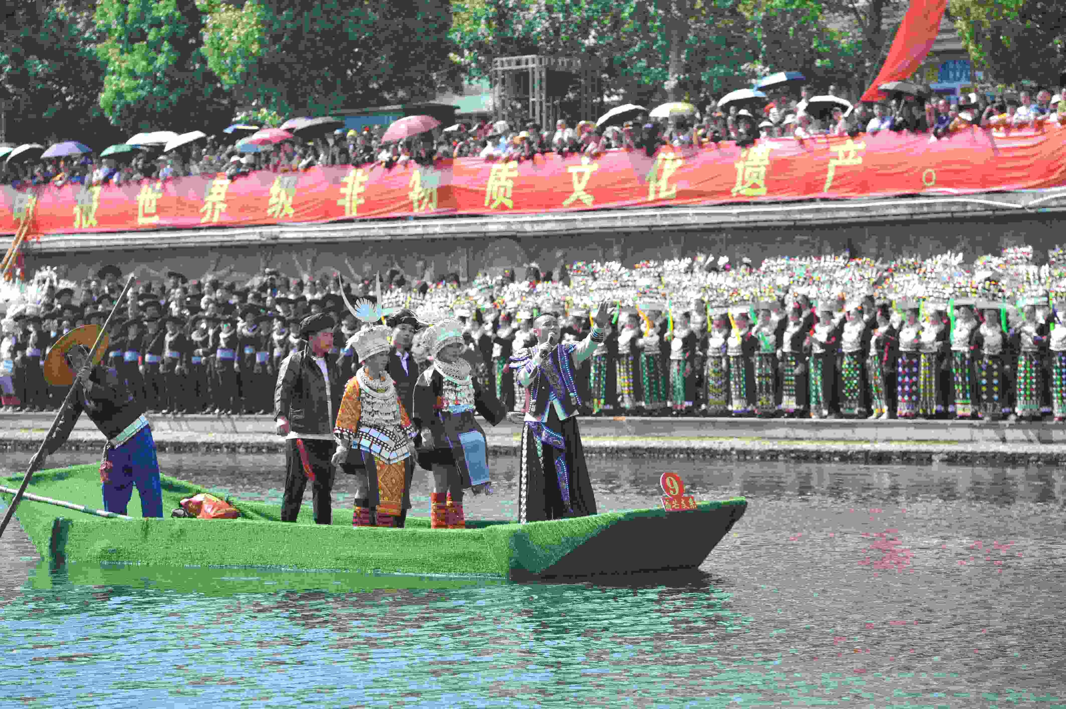 貴州臺江:翁你河畔上演萬人苗歌對唱