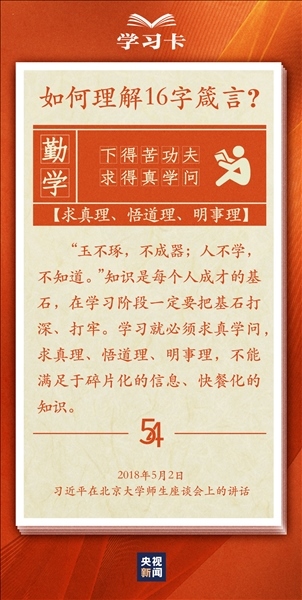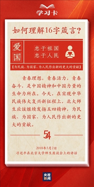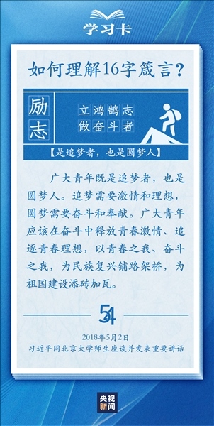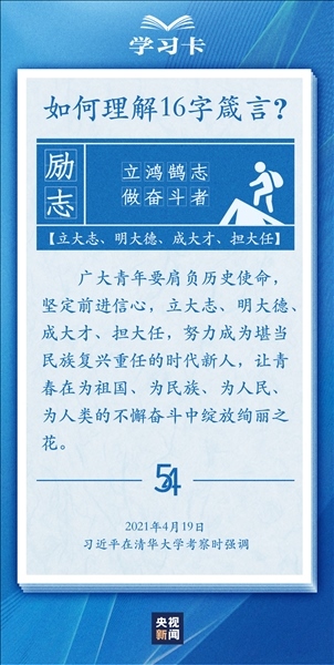 青春,是人生最美的時(shí)光。青年,是國家的未來和民族的希望。每每與青年對話,習(xí)近平總書記無不囑托青年“立大志”“堅(jiān)定理想信念”“擔(dān)當(dāng)復(fù)興大任”,言之諄諄,意之殷殷。對于新時(shí)代青年如何走好人生路,習(xí)近平總書記2018年提出十六字箴言,字短意長。今天,一起學(xué)習(xí)↓