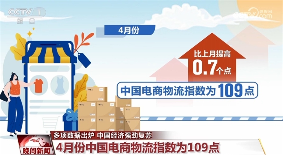 在國內(nèi)消費恢復帶動下,電商物流指數(shù)也呈現(xiàn)連續(xù)上漲態(tài)勢。4月份中國電商物流指數(shù)為109點,比上月提高0.7個點。電商物流總業(yè)務(wù)量和農(nóng)村電商業(yè)務(wù)量實現(xiàn)連續(xù)4個月上漲,電商物流總業(yè)務(wù)量增幅擴大,農(nóng)村電商總業(yè)務(wù)量增速重回20%以上。