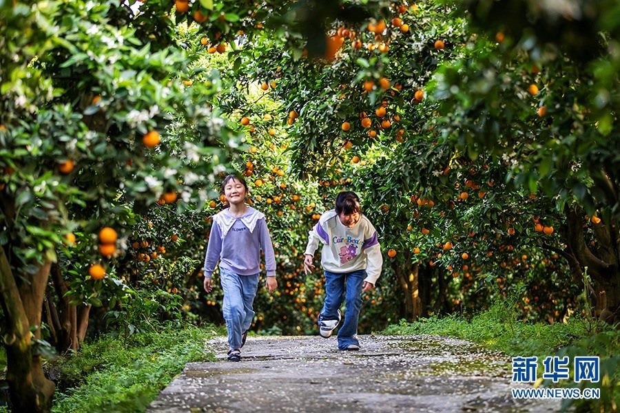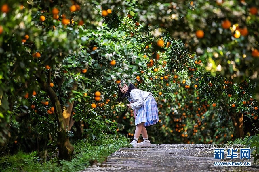 每到橘花燦爛時(shí),綠浪掩映金色橙果,微風(fēng)輕送撲鼻花香,吸引了不少游客前來觀賞,果子也實(shí)現(xiàn)就地銷售,柑橘成為農(nóng)民增收的“搖錢樹”。新華網(wǎng)發(fā)(余鴻 攝)