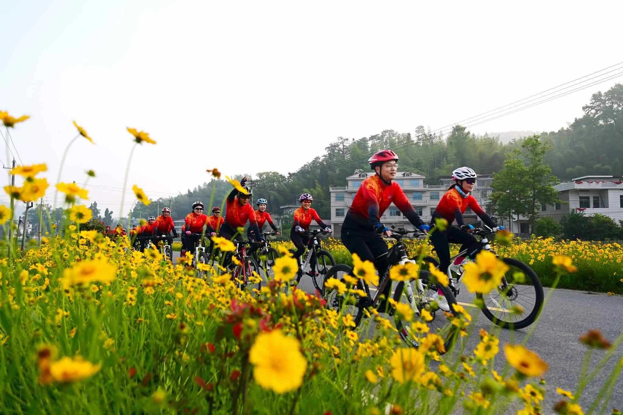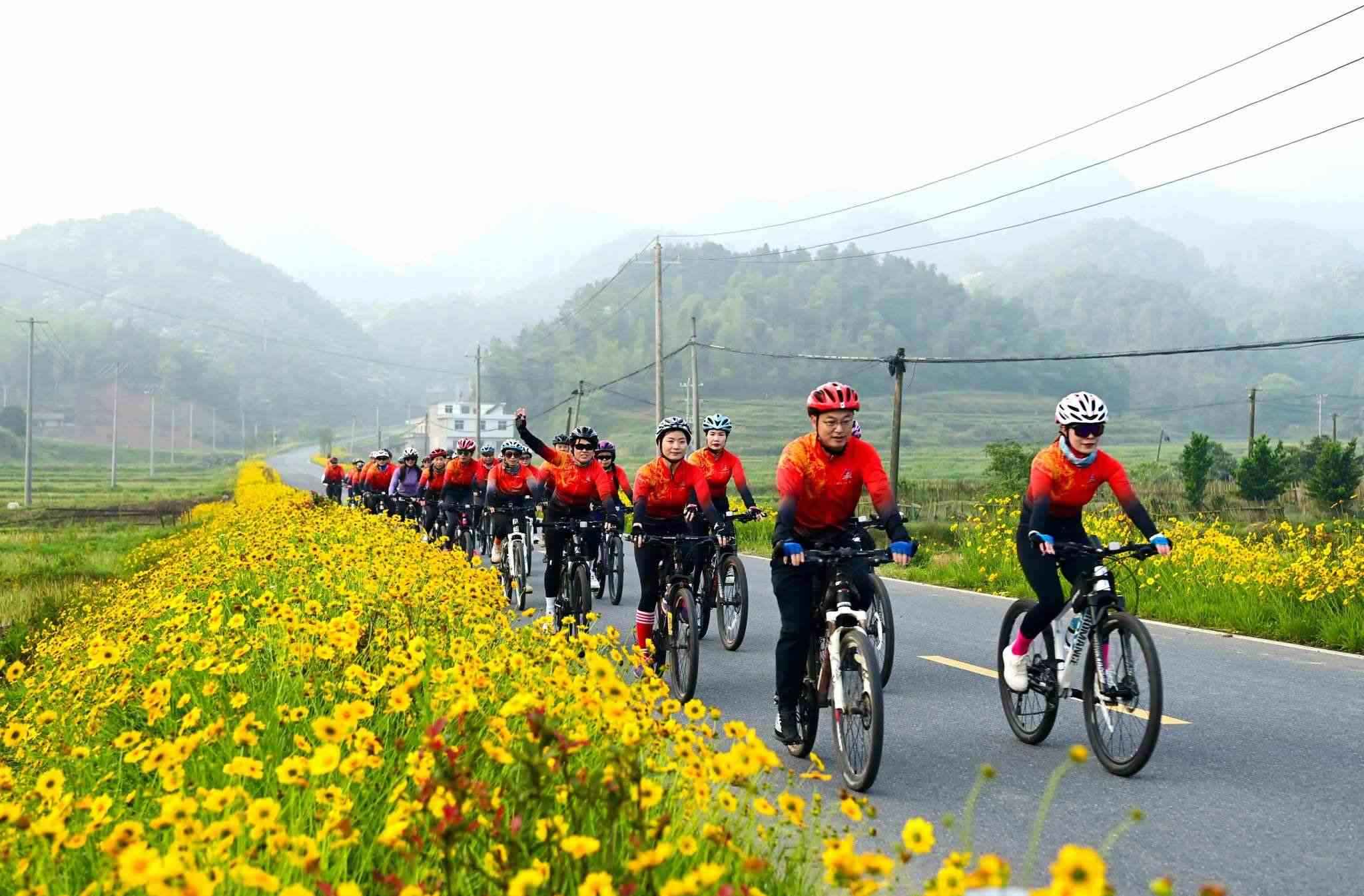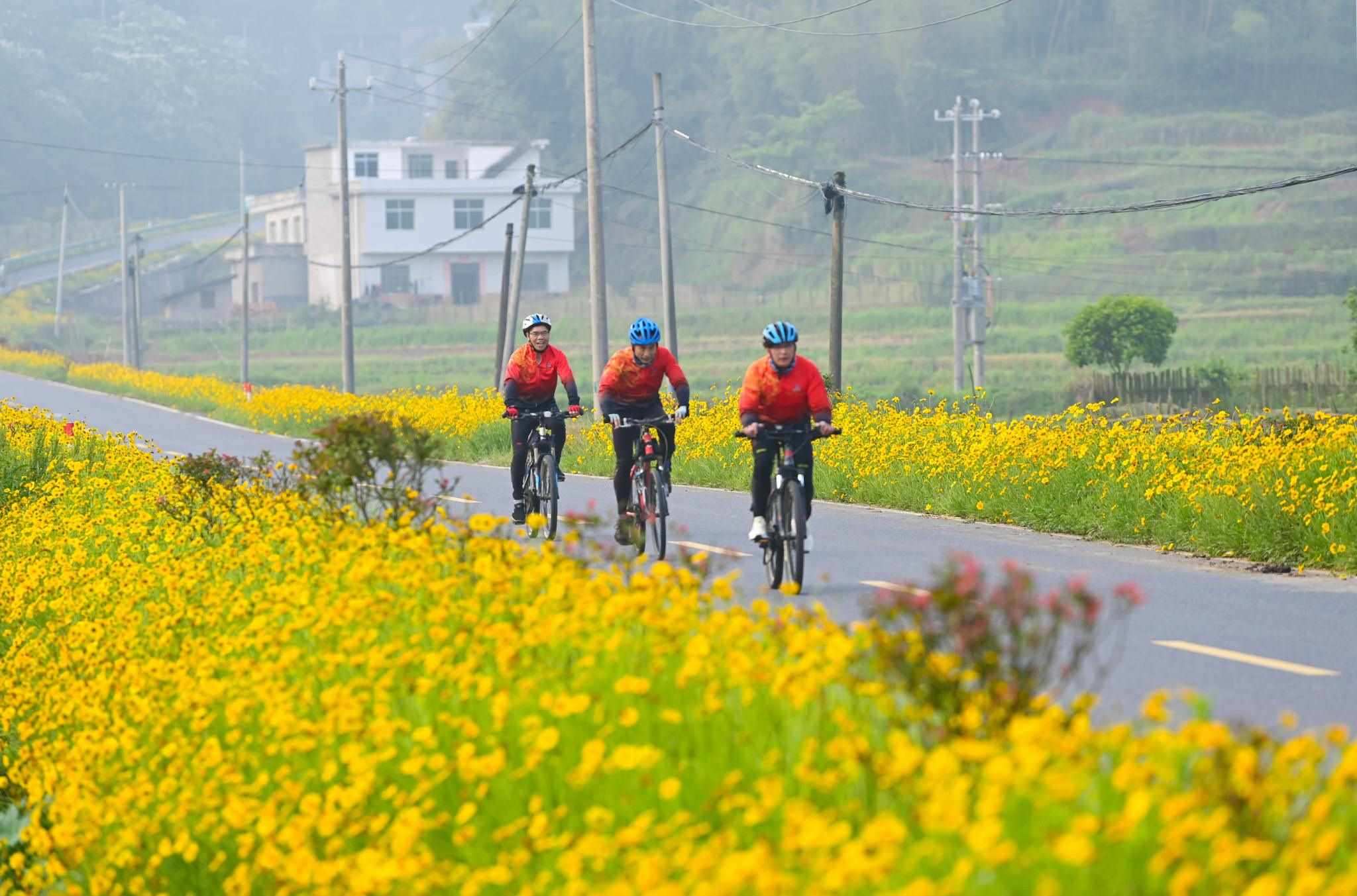 近日,江西省宜春市萬載縣鵝峰鄉(xiāng)多江村通往白良鎮(zhèn)范塘村鄉(xiāng)村公路兩旁的格?;ǜ傁嗑`放、搖曳多姿,吸引眾多騎行、攝影愛好者前來游玩打卡。視覺中國