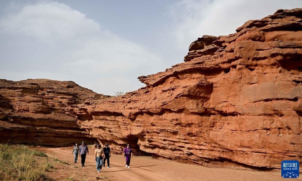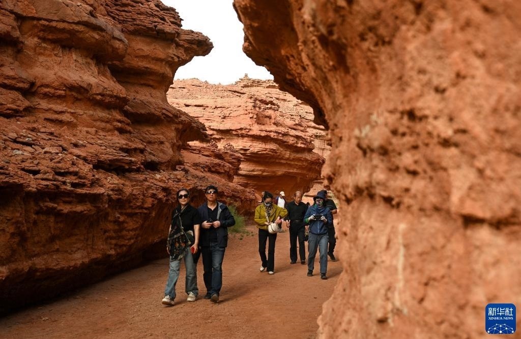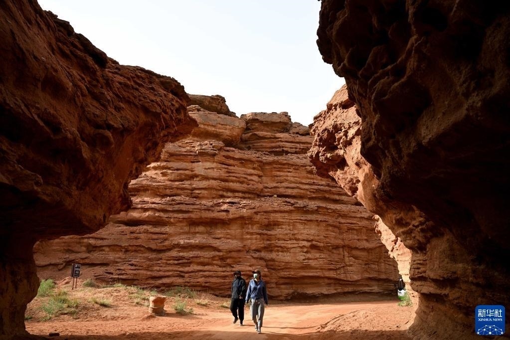 5月13日,游客在內(nèi)蒙古阿拉善盟阿拉善左旗西部夢幻峽谷景區(qū)參觀游玩。   新華社記者 貝赫 攝