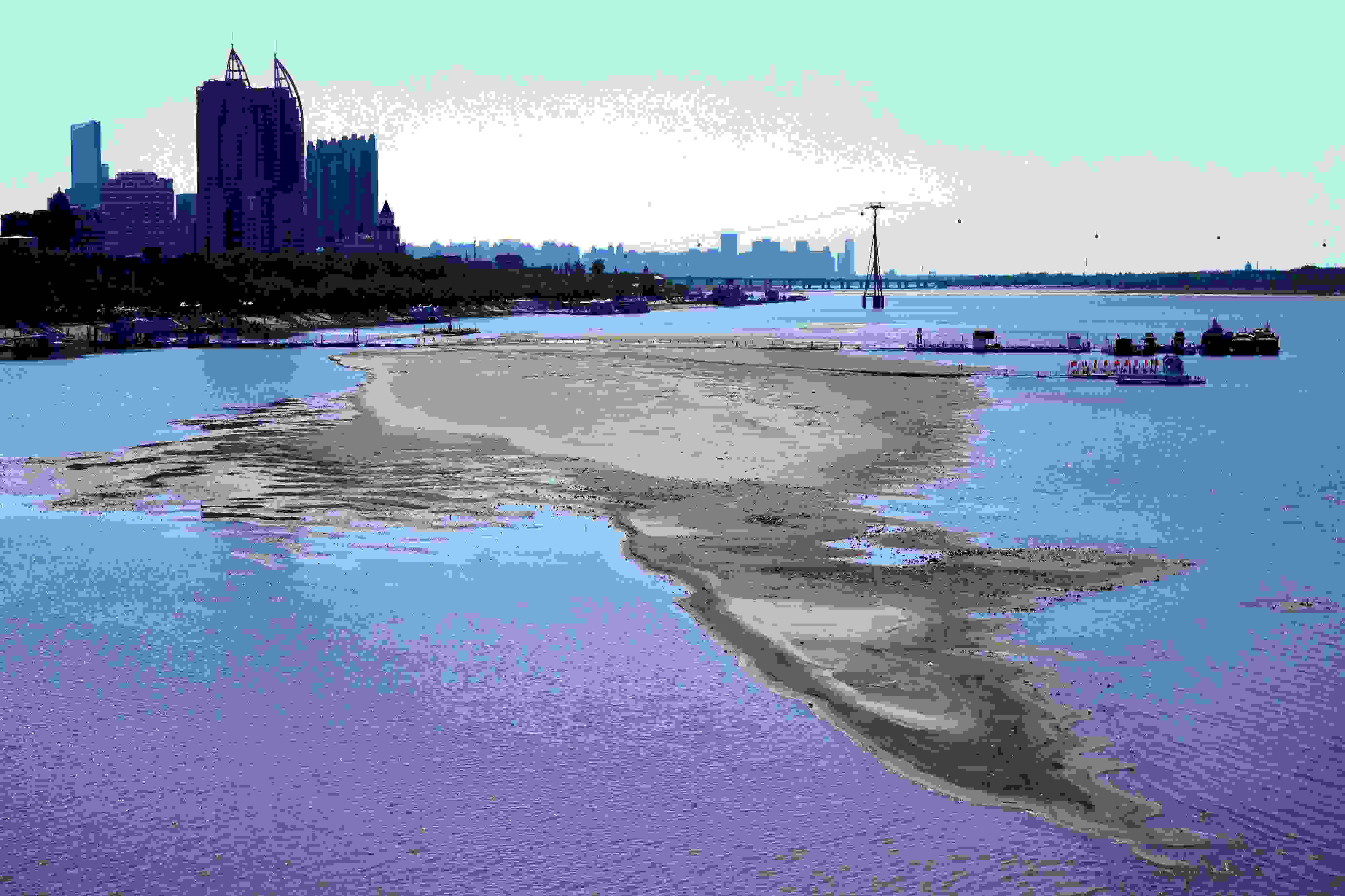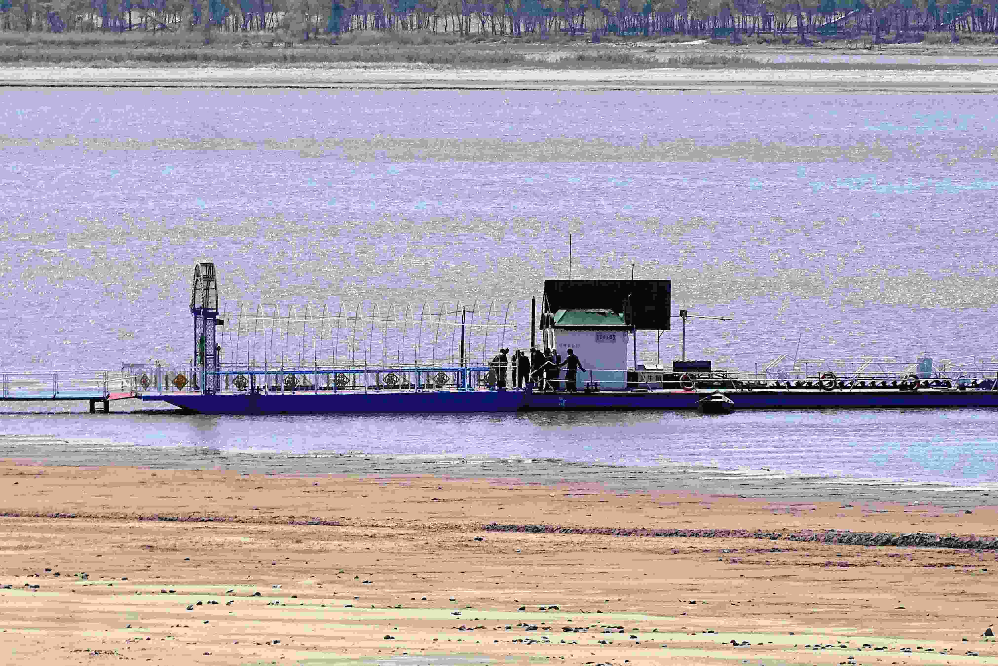 近日,受上游來水量減少和無明顯降水天氣影響,松花江哈爾濱段水位持續(xù)走低,江渚大面積裸露,往返太陽(yáng)島風(fēng)景區(qū)輪渡暫停通航。 吳胡荼 攝
