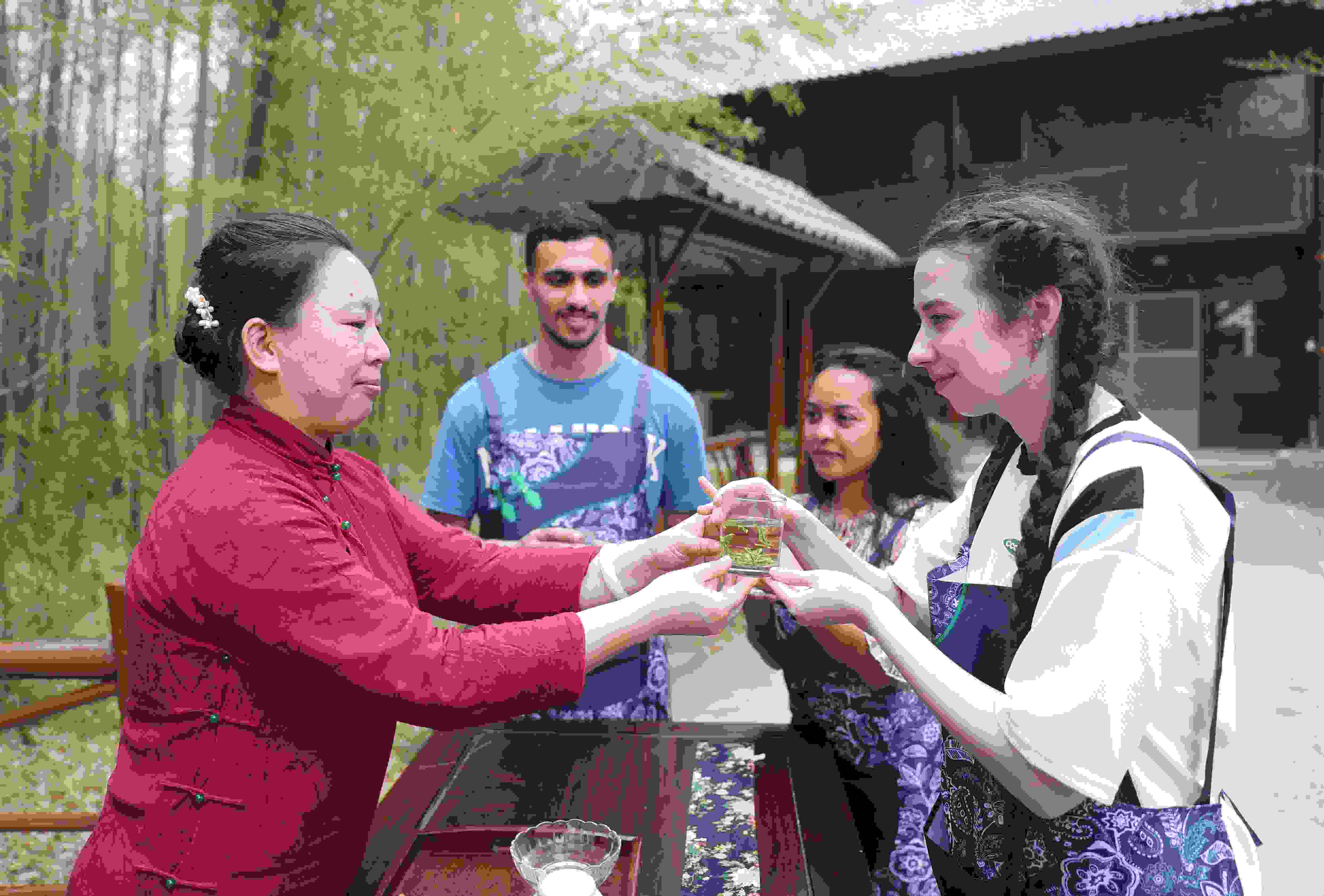 5月13日,在“國(guó)際茶日”來(lái)臨之際,山東科技大學(xué)數(shù)十名來(lái)自俄羅斯、巴基斯坦、斯里蘭卡等11個(gè)國(guó)家的留學(xué)生,來(lái)到青島西海岸新區(qū)海青鎮(zhèn)茶博園參加采茶、茶藝表演以及品茶等活動(dòng),體驗(yàn)中國(guó)傳統(tǒng)的茶文化,感受茶產(chǎn)業(yè)助力鄉(xiāng)村振興的特色發(fā)展之路。 張進(jìn)剛 攝