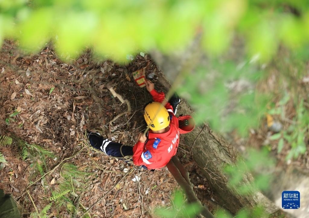 當(dāng)日,湖南省張家界市武陵源區(qū)山地應(yīng)急救援隊在天子山開展繩索救援適應(yīng)性訓(xùn)練的同時,義務(wù)撿拾叢林中的飲料瓶、塑料袋等垃圾,以實際行動保護(hù)景區(qū)自然生態(tài)環(huán)境。該救援隊自2020年成立以來,借助專業(yè)技術(shù)力量義務(wù)為各景區(qū)提供應(yīng)急救援服務(wù),并定期開展撿拾垃圾等公益活動。