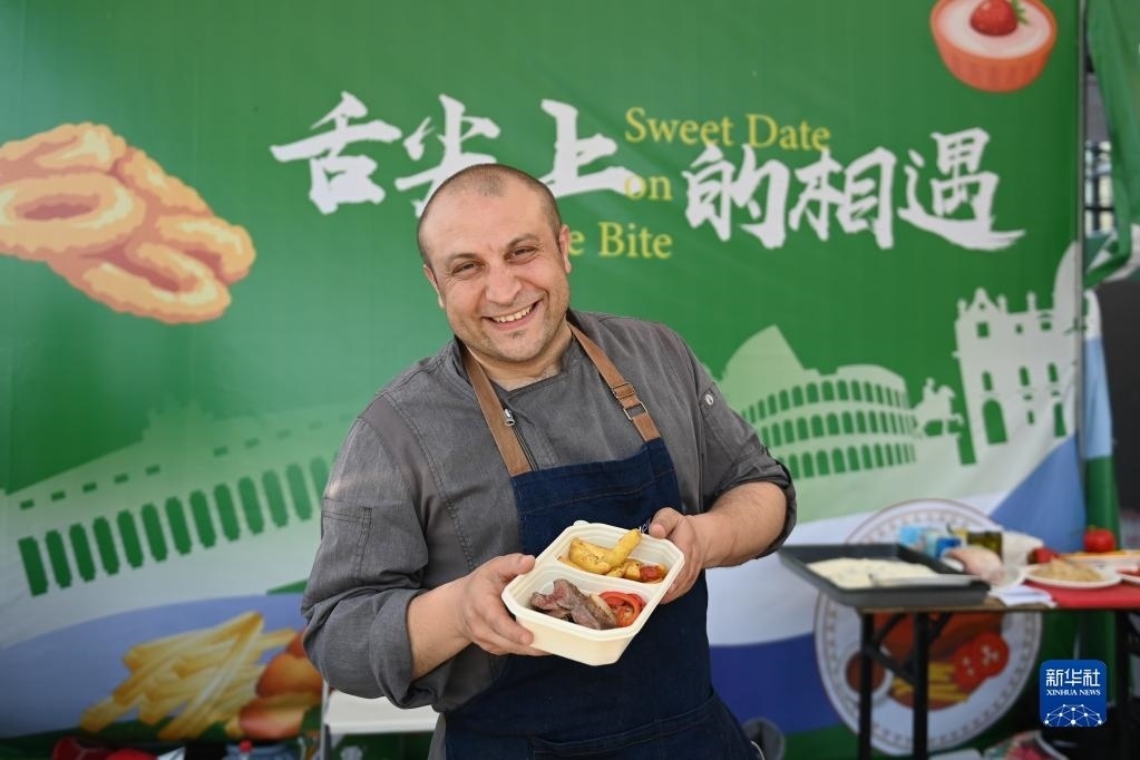 5月15日,廚師在現(xiàn)場(chǎng)為游客制作羅馬尼亞美食。