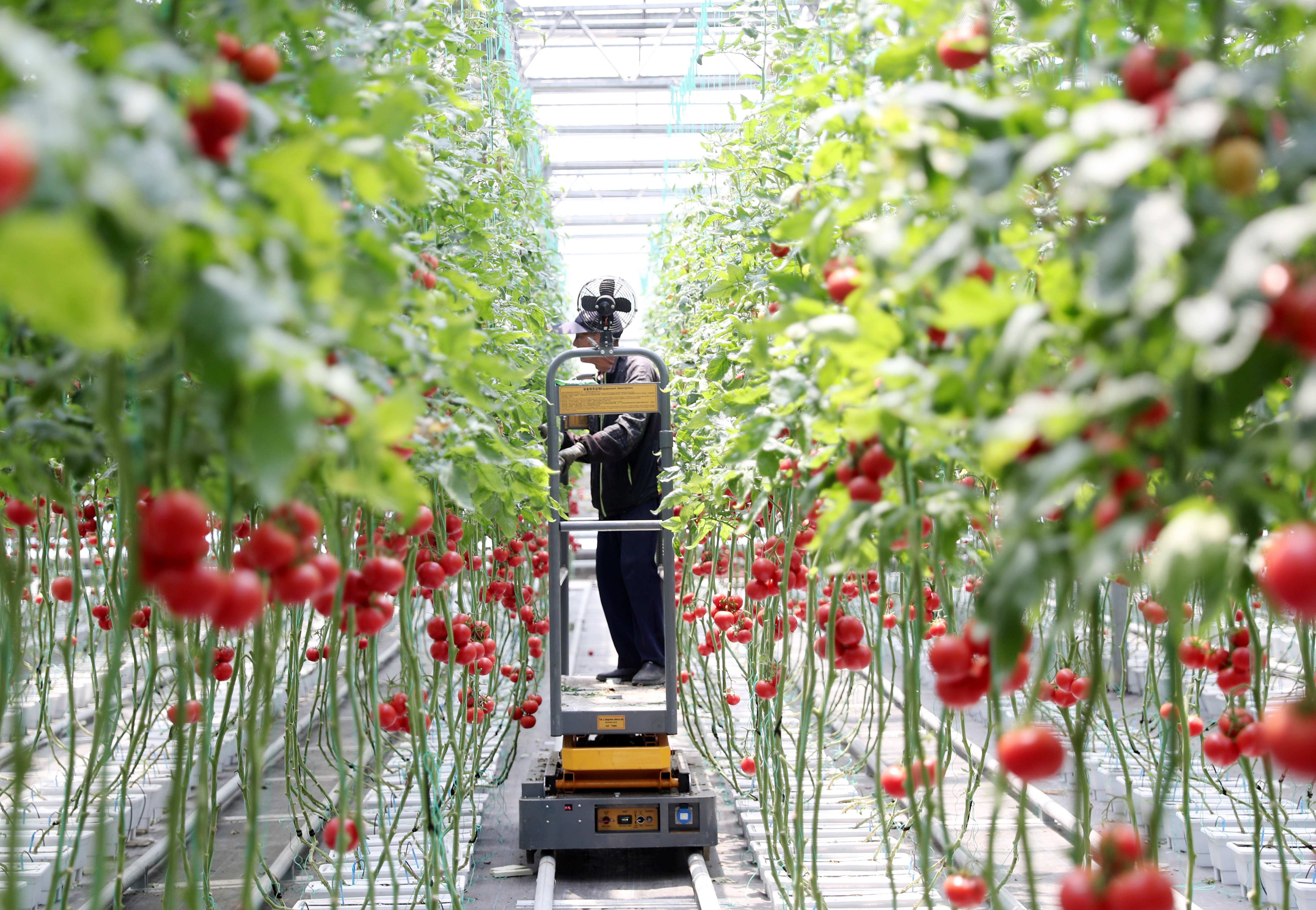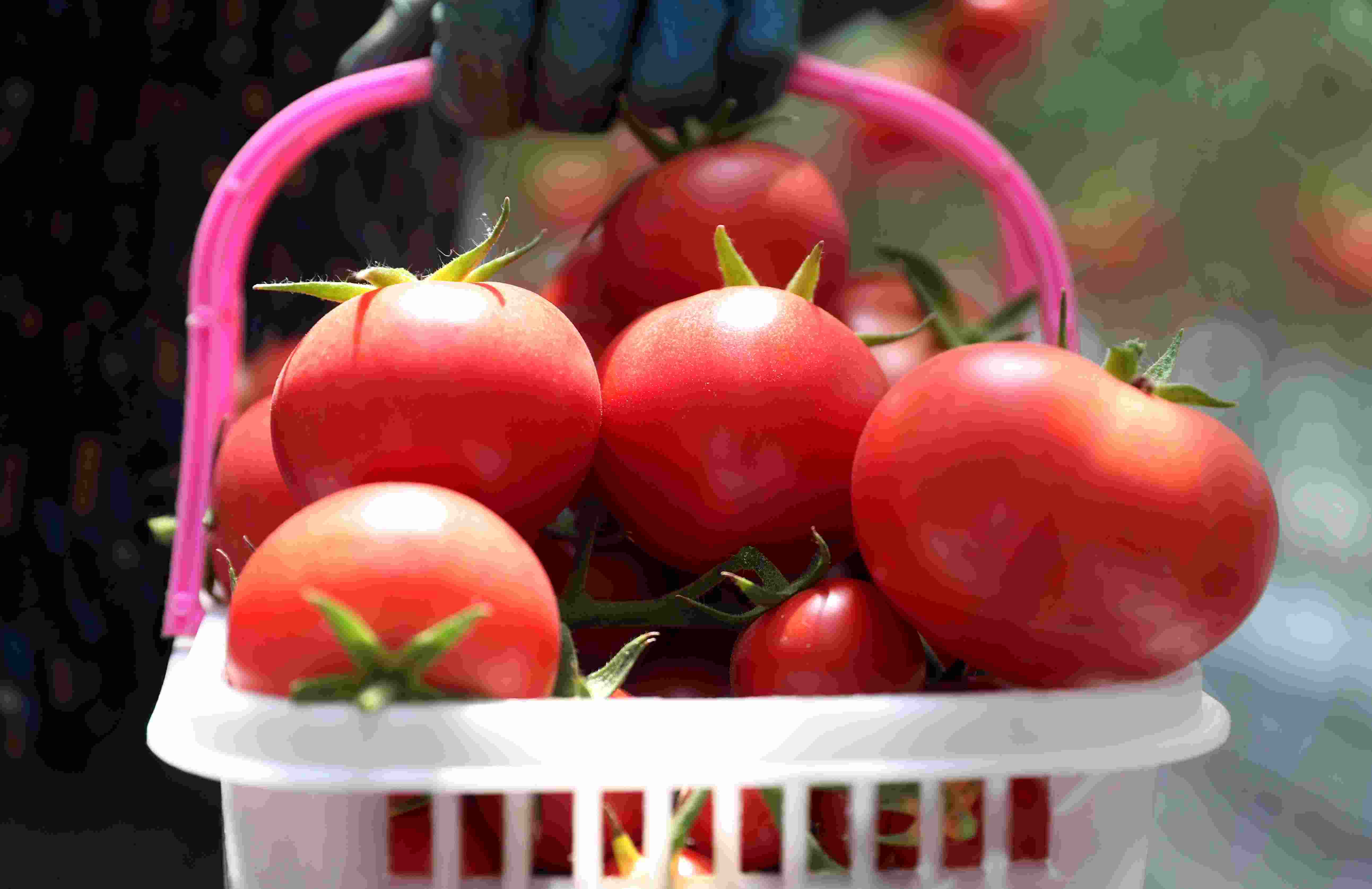 5月15日,村民在青島市即墨區(qū)北安街道一家智慧農(nóng)場內(nèi)采摘西紅柿供應(yīng)市場。 張進(jìn)剛 攝