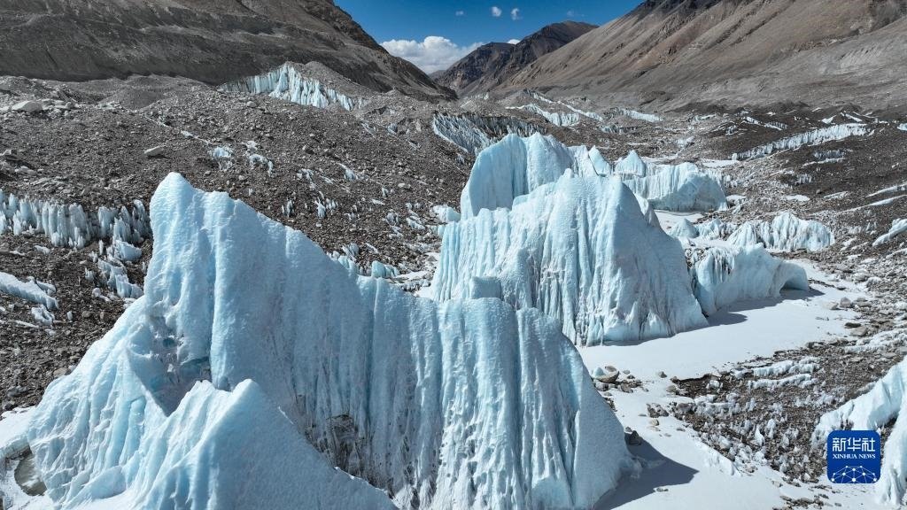 這是珠峰腳下的中絨布冰川(5月15日攝,無人機(jī)照片)。