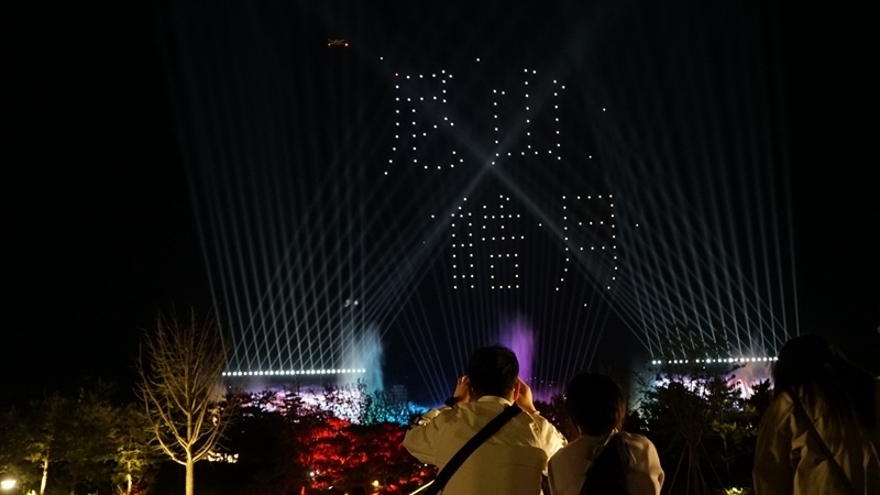 山東曲阜尼山圣境夜游項目內的無人機表演。(受訪單位供圖)