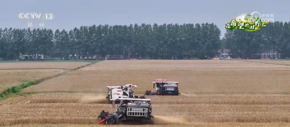 總臺(tái)記者 許偉:這里是湖北當(dāng)陽(yáng)市草埠湖鎮(zhèn)的一塊示范田。我們可以看到,金色的麥穗顆粒飽滿,現(xiàn)在有5臺(tái)收割機(jī)正在麥田里面來(lái)回穿梭,收獲小麥。據(jù)了解,今年當(dāng)陽(yáng)市安排了1800多臺(tái)(套)農(nóng)機(jī)具參與到夏收當(dāng)中。