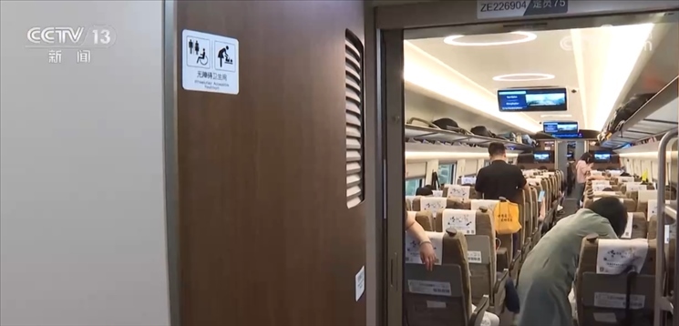 鐵路部門也推出了一系列無(wú)障礙服務(wù)舉措。由北京西開(kāi)往湖南邵陽(yáng)的G811次智能復(fù)興號(hào)動(dòng)車組,16節(jié)車廂中的第4號(hào)、第12號(hào)車廂的150個(gè)座位優(yōu)先提供給殘障旅客,也被稱作“無(wú)障礙車廂”,里面配備了更寬闊的通過(guò)門、無(wú)障礙衛(wèi)生間、輪椅放置區(qū)、盲文服務(wù)提示標(biāo)識(shí)等。