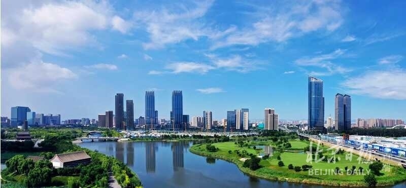 今天,古塔腳下,新城崛起。登臨五河交匯處的高樓觀景平臺(tái),憑欄眺望,只見(jiàn)運(yùn)河水道兩側(cè),現(xiàn)代化樓宇鱗次櫛比。這里是城市副中心運(yùn)河商務(wù)區(qū)所在地,20679家注冊(cè)企業(yè)入駐、包括國(guó)家級(jí)綠色交易所在內(nèi)的一批重大項(xiàng)目相繼落戶(hù),為其注入勃發(fā)生機(jī)。