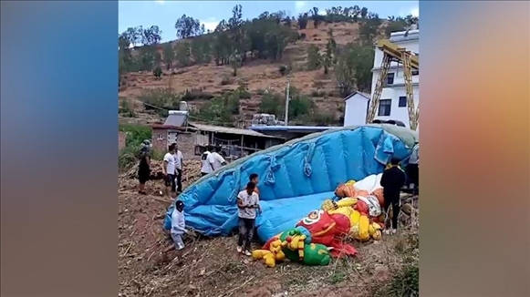 ·大理平川鎮(zhèn)一充氣城堡側(cè)翻,組織方:龍卷風突襲有小朋友受傷。