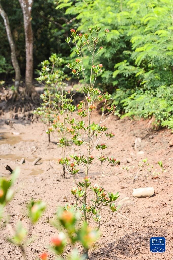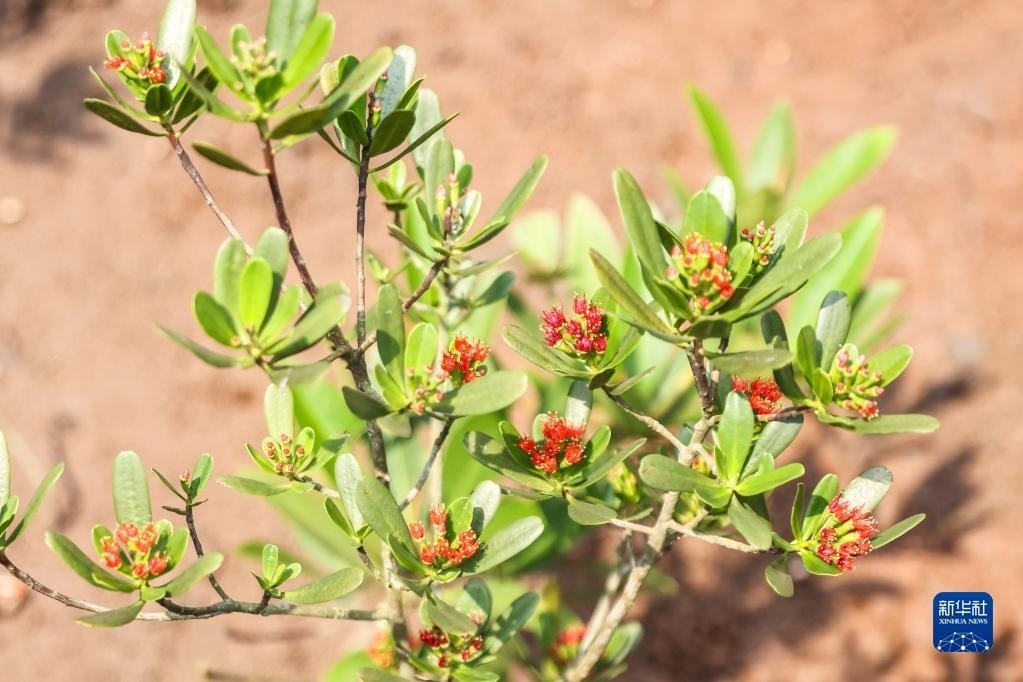 近日,在海南東寨港國家級自然保護區(qū)里的瀕危紅樹植物紅欖李迎來花期。據(jù)悉,紅欖李是珍稀瀕危紅樹植物、國家一級保護植物,被譽為紅樹林中的“大熊貓”。國內(nèi)一度僅存14株。2014年,海南東寨港國家級自然保護區(qū)管理局成功培育出紅欖李幼苗,并建立紅欖李野外種植基地。如今這里已有超過20畝、約2300株的紅欖李。