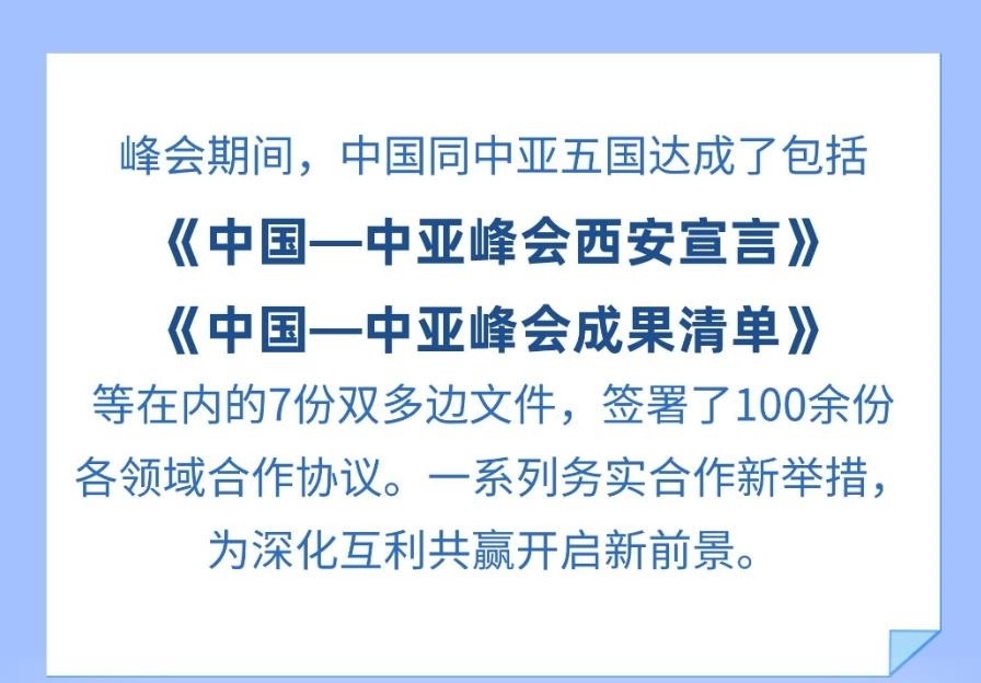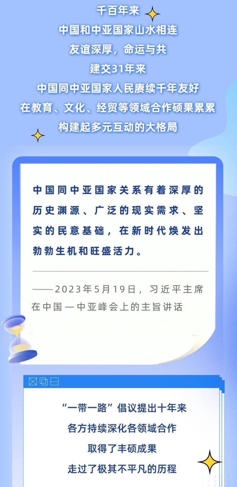 “今天我們?cè)谖靼蚕嗑?,續(xù)寫千年友誼,開辟嶄新未來,具有十分重要的意義?!?月19日,習(xí)近平主席在陜西西安主持中國—中亞峰會(huì),并發(fā)表題為《攜手建設(shè)守望相助、共同發(fā)展、普遍安全、世代友好的中國—中亞命運(yùn)共同體》的主旨講話。