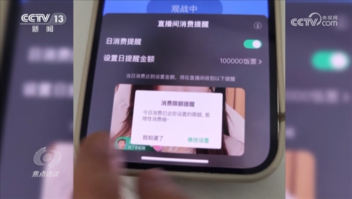 記者通過查詢發(fā)現(xiàn),有少數(shù)網(wǎng)絡(luò)平臺在用戶進入直播間時會提供這樣一個選項,用戶可以自己限定打賞額度,設(shè)定之后等到打夠額度時,會收到相應(yīng)的提醒。不過,這和指導(dǎo)意見所要求的建立單場受賞總額、單次打賞額度合理設(shè)置上限,必要時建立打賞冷靜期等并不是一回事。