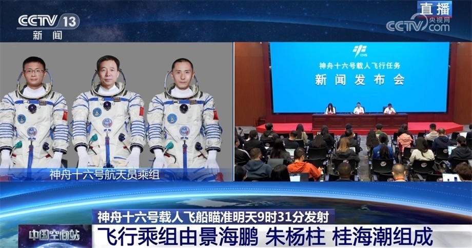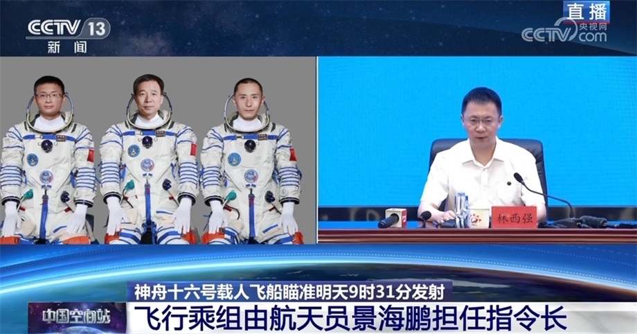 中國載人航天工程辦公室副主任、工程新聞發(fā)言人 林西強:受任務總指揮部委托,由我向大家介紹神舟十六號載人飛行任務有關情況。經總指揮部研究決定,瞄準北京時間5月30日9時31分發(fā)射神舟十六號載人飛船,飛行乘組由航天員景海鵬、朱楊柱和桂海潮組成,景海鵬擔任指令長。航天員景海鵬先后參加過神舟七號、九號、十一號載人飛行任務,朱楊柱和桂海潮都是首次飛行。目前,執(zhí)行此次發(fā)射任務的長征二號F遙十六火箭即將開始加注推進劑。