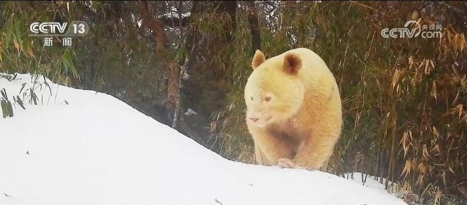 央視網(wǎng)消息:白化動(dòng)物是自然界中一類奇特而神秘的個(gè)體。我國(guó)古代史料中,便有對(duì)白化鹿、白化熊、白化海龜甚至是白化鳥類的記錄。白化現(xiàn)象可能在多種動(dòng)物類群中出現(xiàn),連我們的國(guó)寶大熊貓也不例外。在我身后的大屏上,是幾年前出現(xiàn)在公眾視野中的一只白色大熊貓幼崽的圖片,這只罕見的熊貓幼崽僅僅留下了一張照片后便沒有了任何音訊。至今三年過去,從大熊貓國(guó)家公園的臥龍片區(qū)傳來消息,圖片上的白色大熊貓幼崽已在當(dāng)?shù)乇Wo(hù)部門的守護(hù)下健康長(zhǎng)大,四川臥龍國(guó)家級(jí)自然保護(hù)區(qū)管理局首度公開了這只已經(jīng)成年的白色大熊貓完整的活動(dòng)影像。