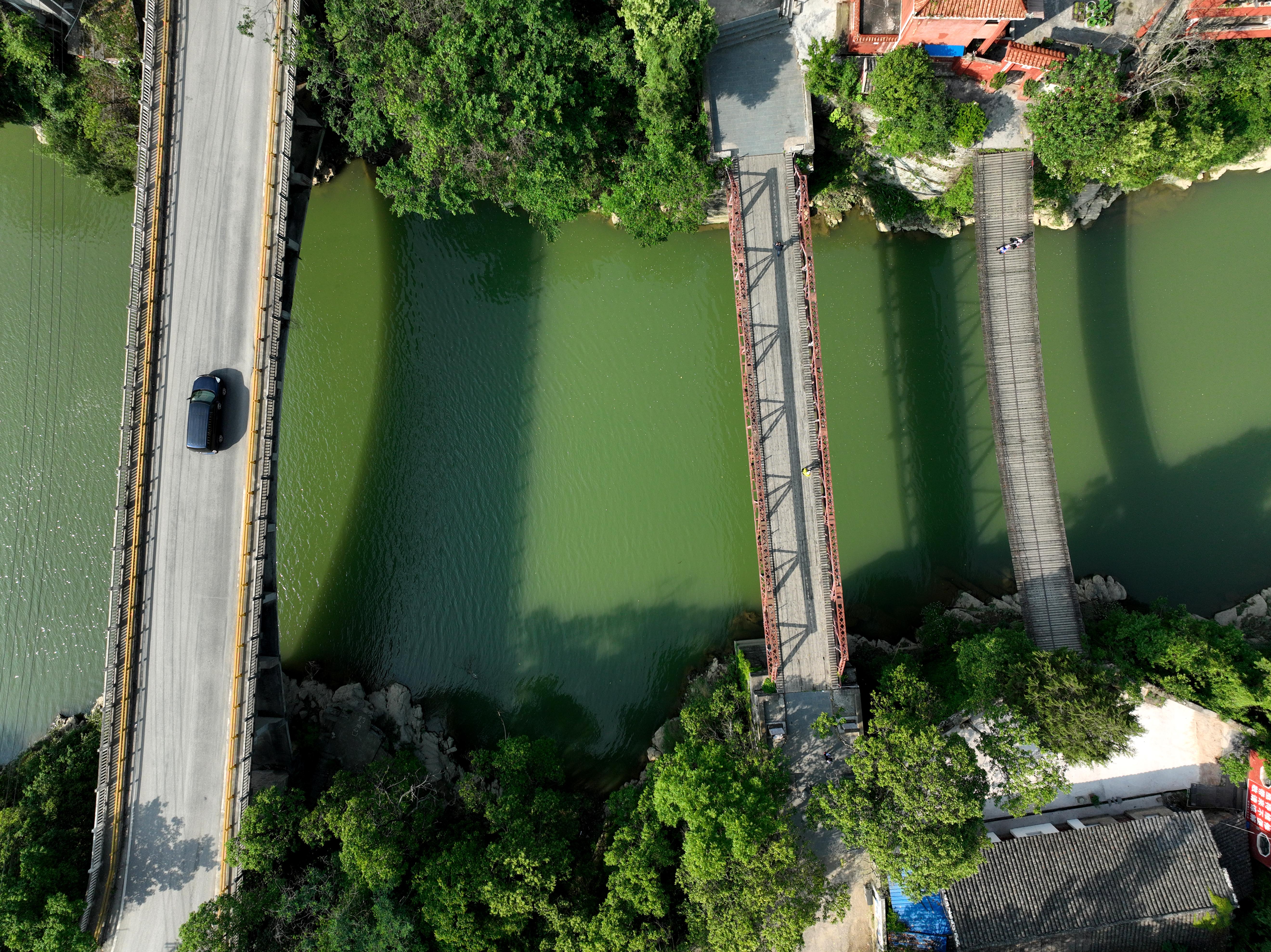 2023年5月27日拍攝的貴州省黃平縣重安鎮(zhèn)“三朝橋”(無(wú)人機(jī)照片)。 (寧堅(jiān) 趙軍)