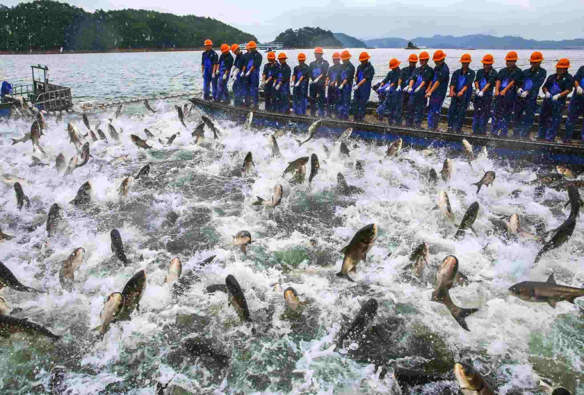 杭州:千島湖再現(xiàn)“巨網(wǎng)捕魚”景象