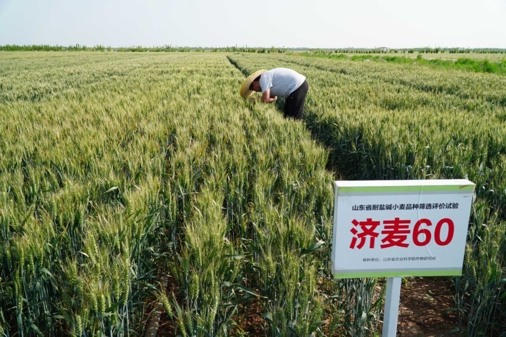 “這是山東省農業(yè)科學院作物所小麥遺傳育種團隊專門針對旱地、鹽堿地培育的新品種?!鄙綎|省農業(yè)科學院作物所研究員曹新有說,2022年夏收時測產,在土壤含鹽量3.75‰的土地上,“濟麥60”平均畝產460.98公斤,創(chuàng)鹽堿地小麥高產紀錄。