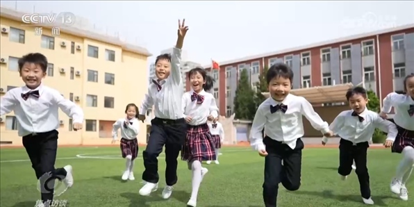 為了防止孩子過早地戴上“小眼鏡”、成為“小胖墩”,讓孩子擁有健康的體魄,近幾年,國(guó)家陸續(xù)采取了一系列具體的舉措。比如鼓勵(lì)基礎(chǔ)教育階段學(xué)校每天開設(shè)一節(jié)體育課,著力保障學(xué)生每天校內(nèi)、校外各一個(gè)小時(shí)體育活動(dòng)時(shí)間。而在“雙減”政策實(shí)施后,許多學(xué)校也按照要求在課后給學(xué)生提供文藝、體育等延時(shí)服務(wù)。在北京市海淀區(qū)實(shí)驗(yàn)小學(xué)九一分校,孩子們每天一節(jié)體育課,再加上上下午的課間操和大課間的體育鍛煉等等,一天之中孩子們的運(yùn)動(dòng)時(shí)間大約在80分鐘以上。