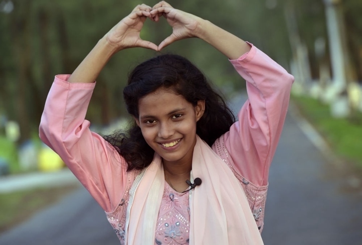 2023年5月26日,沁在孟加拉國做出愛心手勢表達對中國的愛意。新華社發(fā)